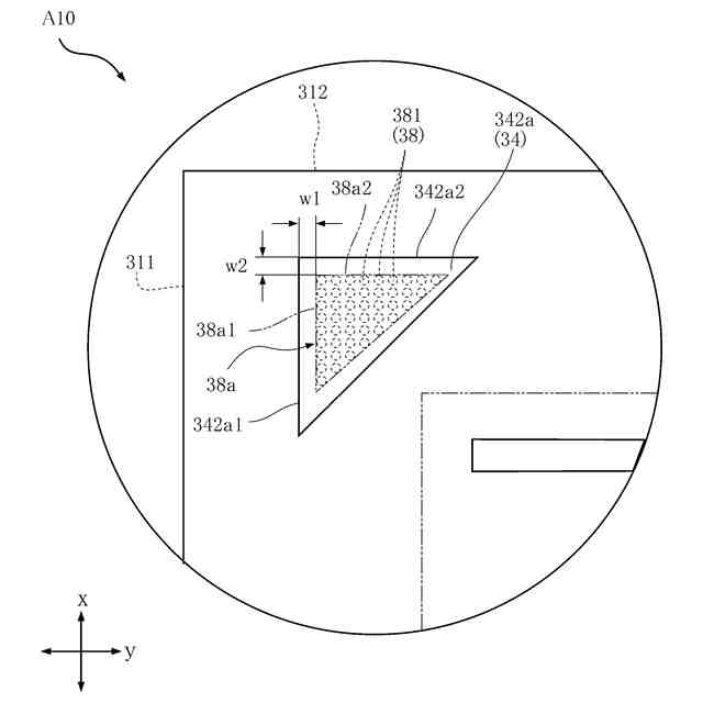 前記厚さ方向に視て、前記確認パターンの形状は三角形状である、