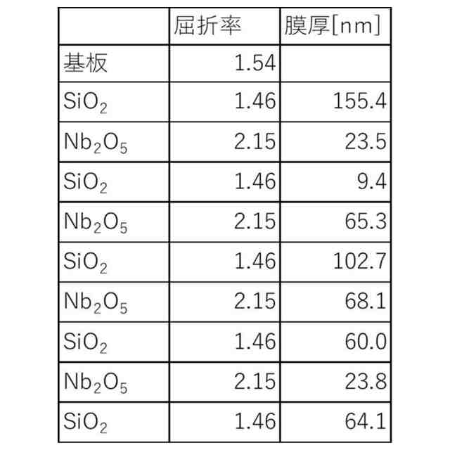 実施例2におけるハーフミラーの反射率特性を示す図。