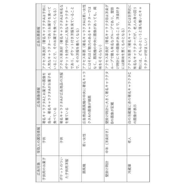 たとえば広告には各種の著名なキャラクタの画像が用いられることが多いが、広告商品や受取人によっては広告効果を上げることができるが、広告商品や受取人によっては広告効果が上がらない場合もある。