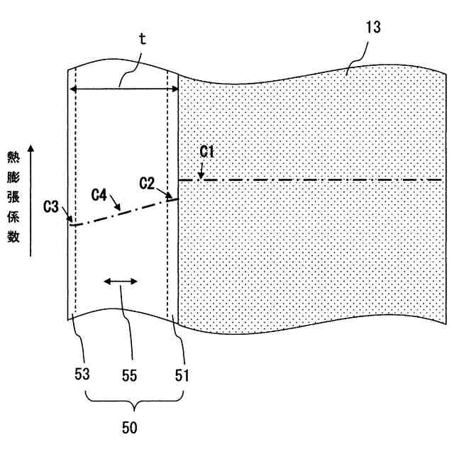 前記中間領域の熱膨張係数C4は、C2>C4>C3の関係を満たすことを特徴とする請求項1に記載のセラミックヒータ。