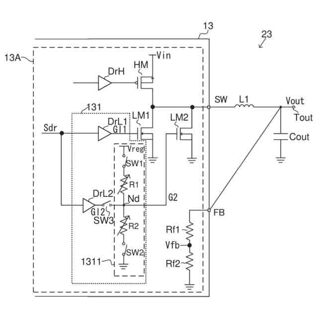 前記ハイサイドトランジスタと前記ローサイドトランジスタとが接続される第1ノードに接続され、外部に出力コンデンサを接続可能に構成されるスイッチ端子と、