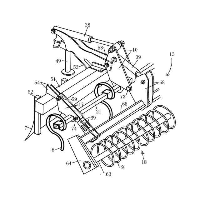 作業機本体と第1回動板の間には、油圧でピストンロッドが伸縮する第1シリンダが設けられており、第1シリンダの作動によって、畦際跳ね上げアッセンブリは、作業機本体に対して第1の枢支軸を中心に上下方向に回動可能であり、