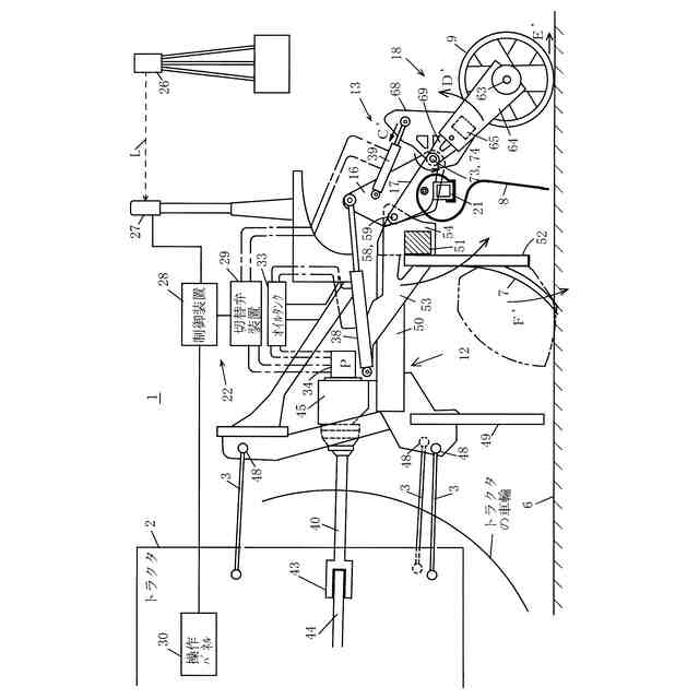 特許文献5、6には、鎮圧輪又はタイヤ輪を有する圃場作業装置側に設けた油圧シリンダの動作で均平板の作業高さを制御する構成は開示されているが、併せて圃場作業装置に、油圧シリンダによって鎮圧輪又はタイヤ輪が畦と干渉しないよう跳ね上げる畦跳ね上げ機構を備えた構成は開示されていない。