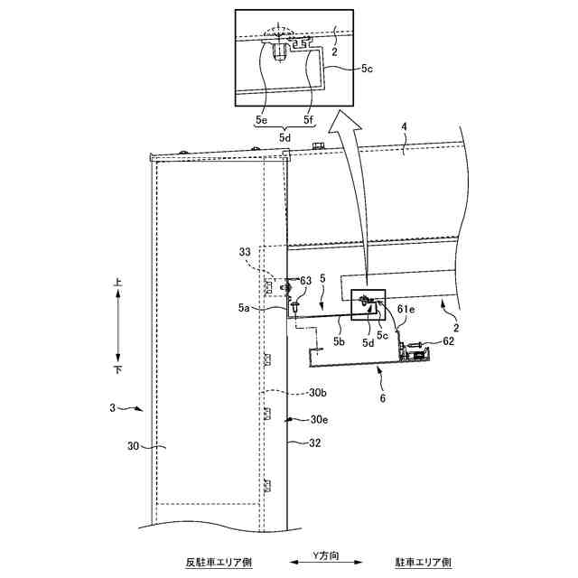照明本体を横樋材の駐車エリア側に配置した例を示す図である。