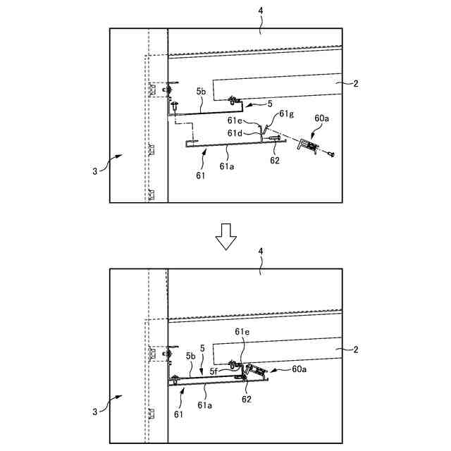 固定部材を用いて照明本体を横樋材の駐車エリア側に配置した例を示す図である。