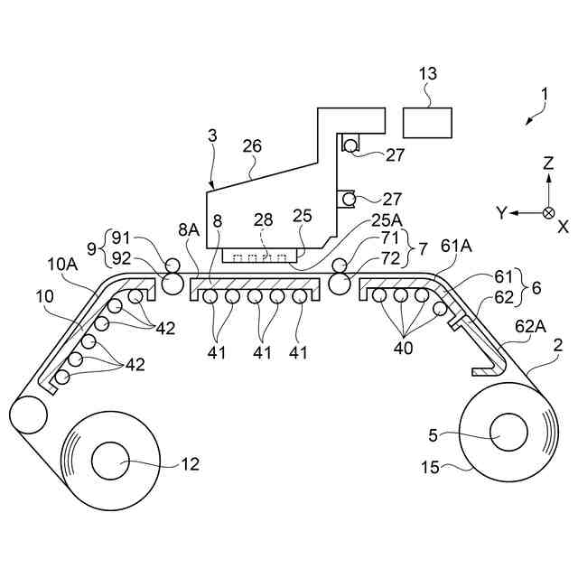 以下、図面を参照しながら、印刷装置1の構成を説明する。以下の各図においては、互いに直交する3つの軸をX軸、Y軸、及びZ軸として説明する。X軸に沿う方向を「X方向」、Y軸に沿う方向を「Y方向」、Z軸に沿う方向を「Z方向」とし、矢印の方向が+方向であり、+方向と反対の方向を-方向とする。なお、+Z方向または-Z方向から見ることを平面視あるいは平面的ともいう。