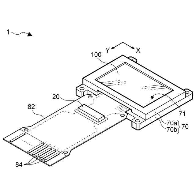 電気光学装置100には、FPC基板82の一端が接続される。なお、FPCは、Flexible Printed Circuitsの略語である。FPC基板82の他端には、複数の端子84が設けられて、図示省略された上位回路に接続される。