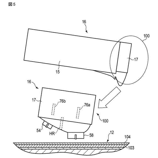 図5は、熱アクチュエータにより記録ヘッド部分を突出させた状態の磁気ヘッドおよび前記ヘッド部を模式的に示す側面図。