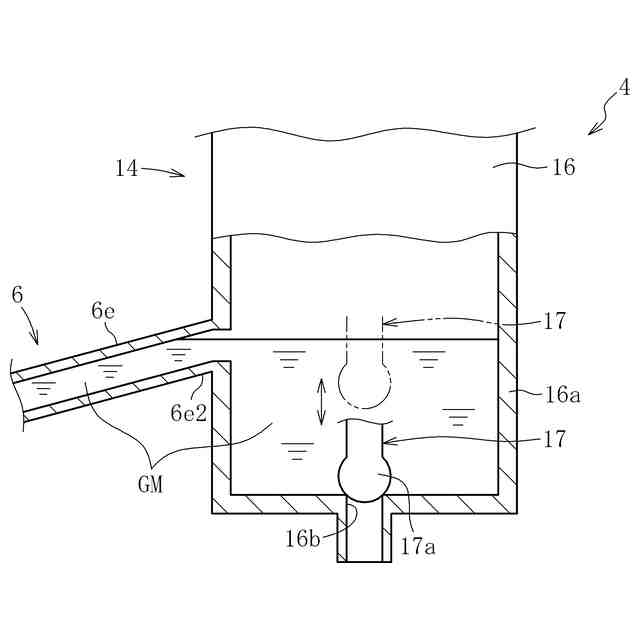 前記下降管は、水平管を介して前記減圧脱泡槽に接続されている、