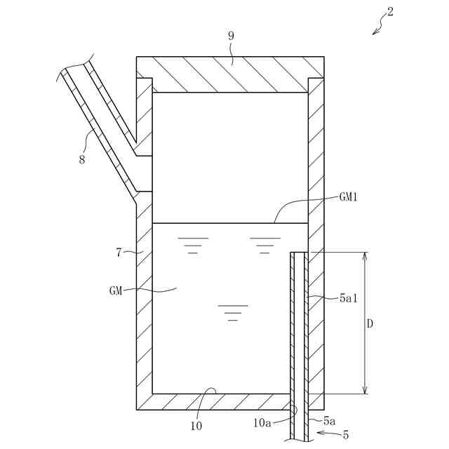 溶融槽MTで生成した溶融ガラスGMを連続的に減圧脱泡装置に供給する際に、溶融槽MT内に貯留される溶融ガラスGMの量が変動する場合がある。具体的には、溶融槽MT内の溶融ガラスGMの量が減少し、図6に示すように、溶融ガラスGMの液面GM1が実線で示す位置から二点鎖線で示す位置まで下がる場合がある。