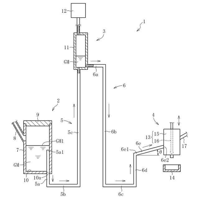 前記傾斜接続管は、前記下降管側に位置する第一端部と、前記成形槽に接続される第二端部と、を有し、