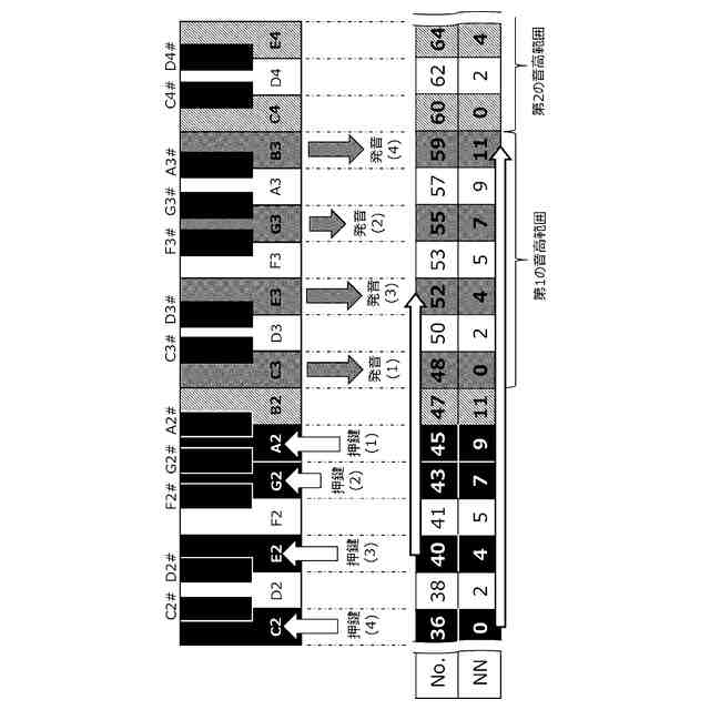 電子楽器に対するユーザの演奏操作を補助する装置が知られている(例えば特許文献1参照)。特許文献1に記載の装置は、曲のコード進行データに従い、ユーザが押すべき鍵を指示する。ユーザは、この指示に従い、コード構成音の鍵を押すことでコード演奏を行うことができる。