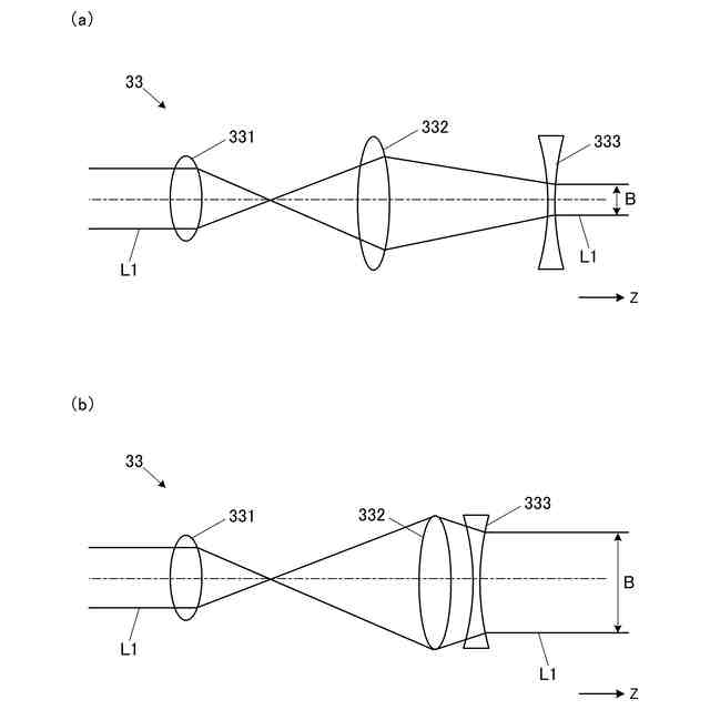 前記光源と前記回折光学素子との間における前記レーザ光の光路に配置され、前記回折光学素子に入射する前記レーザ光の前記ビーム径を変更可能な光学系と、