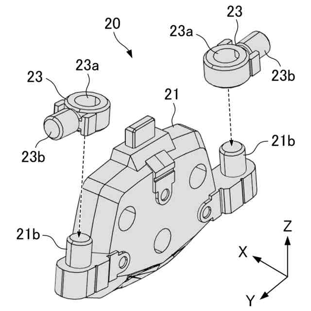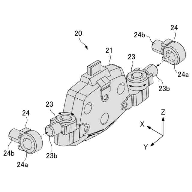 第1軸を中心として回転可能に前記第1パーツに連結される第1連結部材と、前記第1軸と軸方向が異なる第2軸を中心として回転可能に前記第1連結部材に連結される第2連結部材と、を更に備え、