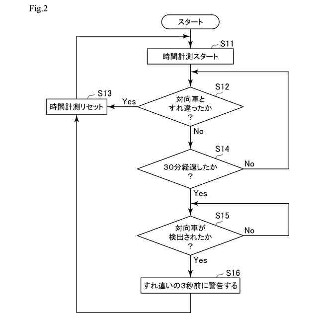 ところで、車両走行中に、比較的長い時間、対向車とのすれ違いがないと、集中力が散漫したり、速度感覚の錯覚が生じることがある。その結果、例えばセンターラインを越えてしまい、そのタイミングで対向車が来ると、事故に繋がる場合がある。
