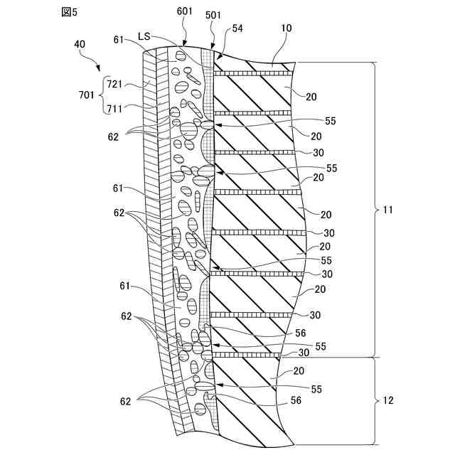 前記断続領域は、前記内層部から前記第1の外層部および前記内層部から前記第2の外層部にわたって形成され、