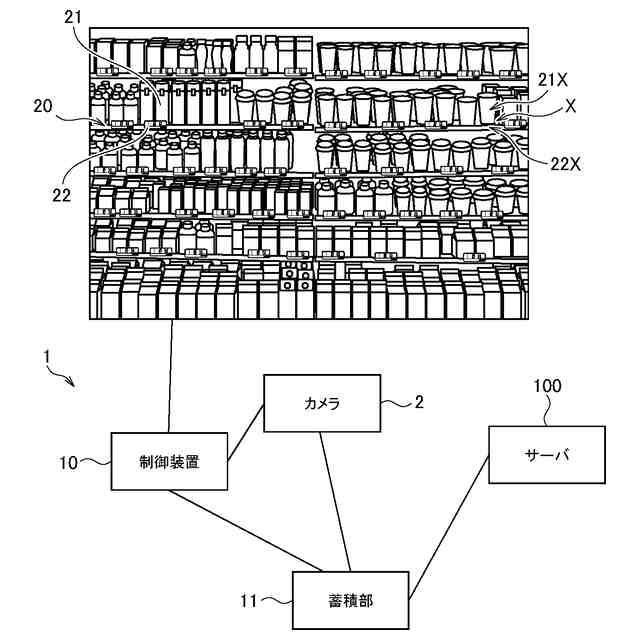 前記電子棚札及び前記カメラを制御する制御装置(10)と、