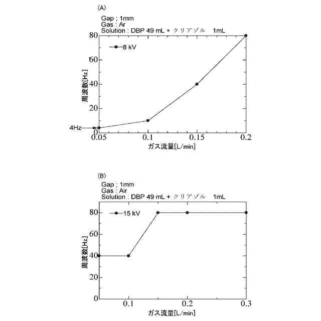 また、上記消泡装置において、前記高電圧電極と、前記液面との間隔は1mm~10mmであり、前記高電圧パルス発生部は、3kV以上の前記高電圧パルスを発生させてよい。例えば、高電圧電極と液面との間隔が1mm~60mmである場合には、3kV以上の高電圧パルスによる高電圧パルス放電によって消泡を行うことができる。なお、高電圧電極と液面との間隔が60mmである場合には、100kV以上の高電圧パルスによる高電圧パルス放電によって消泡を行うことができる。