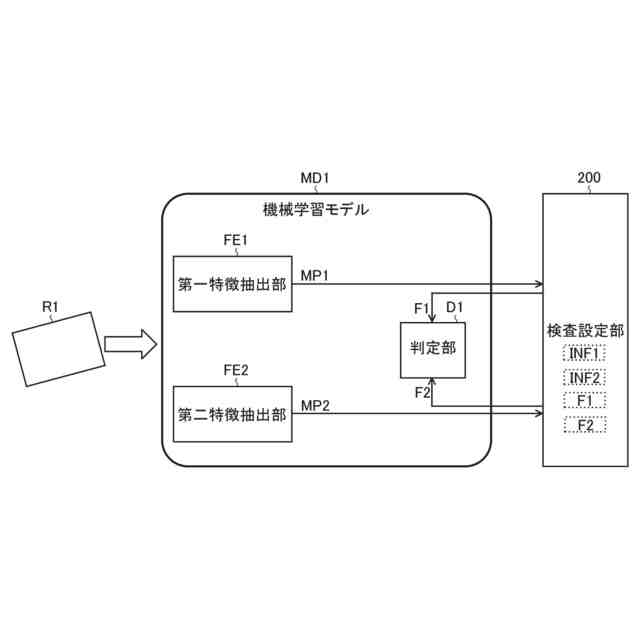 前記機械学習モデルは、入力された画像から特徴量を抽出する第一特徴抽出部及び第二特徴抽出部と、前記特徴量から前記検査結果を出力する判定部と、を含み、