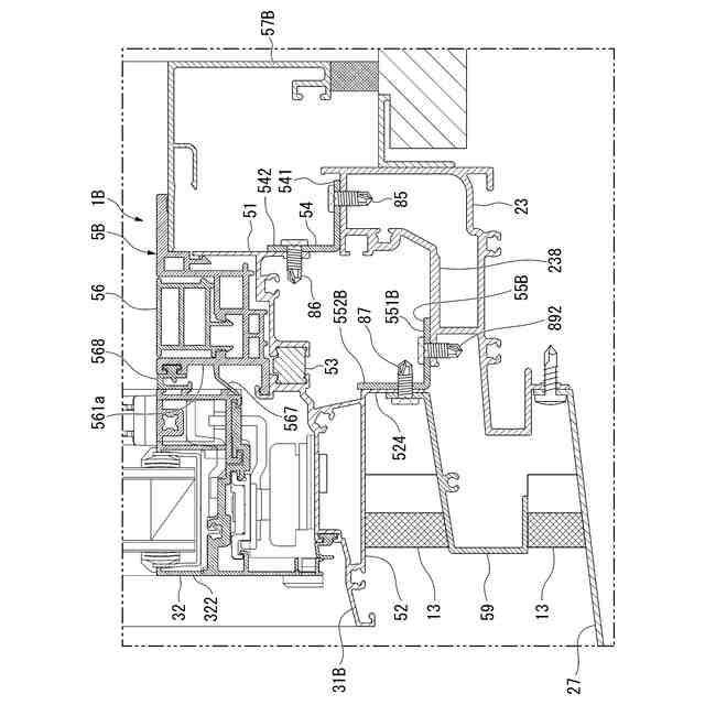 図3に示すように、既設上枠22は、屋内板部221と、屋外板部222と、上板部223と、突出板部224と、を有する。屋内板部221、屋外板部222および突出板部224は、それぞれ平板状である。屋内板部221、屋外板部222および突出板部224の板面は、屋内外方向を向いている。屋内板部221は、屋外板部222の屋内側に間隔をあけて設けられている。上板部223は、平板状である。上板部223の板面は、上下方向を向いている。上板部223の屋内側の端部は、屋内板部221の下端部と接続されている。上板部223の屋外側の端部は、屋外板部222の下端部と接続されている。突出板部224は、上板部223の屋内外方向の中間部から下方に突出している。突出板部224の下端部には、既存の障子26の上框261と接触する気密材224bが取り付けられている気密材取付部224aが設けられている。気密材取付部224aは、突出板部224よりも屋外側に突出している。既設枠21に新設枠31を取り付ける際には、気密材取付部224aから気密材224bが取り外される。