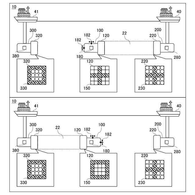 前記いずれかのシステムにおいて、前記第2装置は、レーザ光を受光し、レーザ光を受光した方向と同じ方向に、前記レーザ光を反射する第2レーザ光反射部を更に有してよく、前記第1レーザユニットは、レーザ光を照射する、複数の第1レーザ照射部を更に含んでよく、前記第1制御部は、前記複数の第1照射部にレーザ光を照射させ、前記レーザ光が前記第2レーザ光反射部によって反射された反射光の、前記複数の第1レーザ受光部による受光状況に基づいて、前記第1レーザユニットの位置を基準とした前記第2レーザユニットの相対方向を推定してよい。