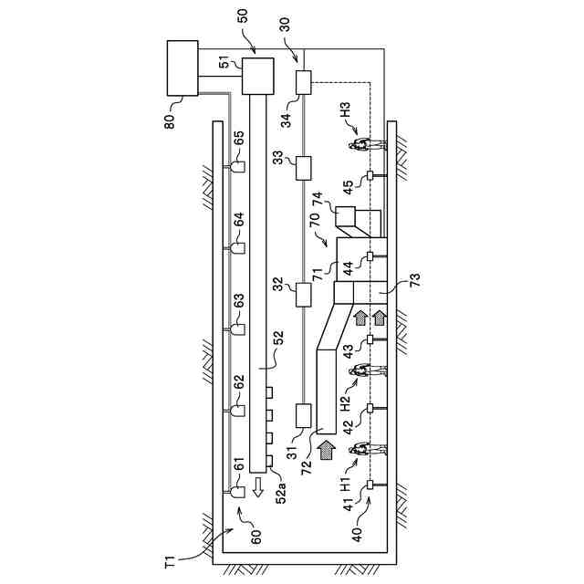 一般的に、トンネルの工事現場では、切羽の粉じん量に合わせて送気ファンや集塵機を作動させてトンネルの坑内の作業環境の改善を行っている。この場合、送気量を増やす方法や送風機の増設といった方法で作業環境の改善に対応している。