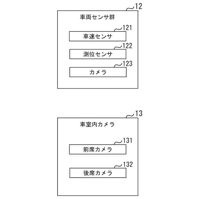 車両センサ群および車室内カメラの要部構成を例示するブロック図。