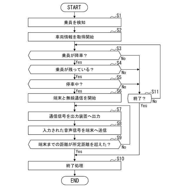 前記乗員検知部が前記複数の乗員のうちの一人以上の降車と、前記複数の乗員のうちの一人以上の乗車継続とを検知し、かつ、前記車両状態検出部が前記車両の停車を検出すると、前記降車が検知された前記乗員が所持する前記端末装置と前記無線通信するように前記通信部を制御するとともに、前記無線通信する前記端末装置からの前記通信信号を出力するように前記出力部を制御する制御部と、