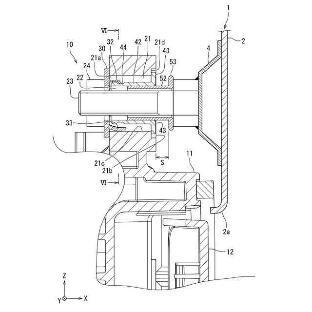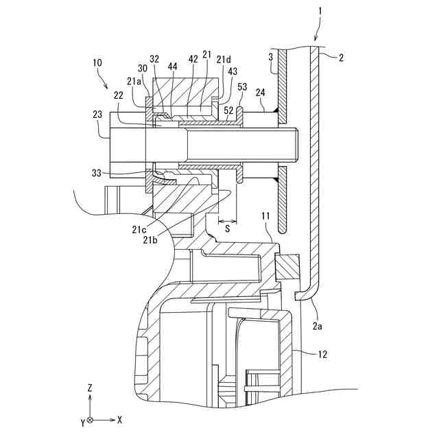 前記複数の弾性変形片が、周方向に間隔をあけて配置され、前記第1締結具が、前記貫通穴に対し、径方向に変位可能に前記弾性変形片を介して弾性的に支持されている、