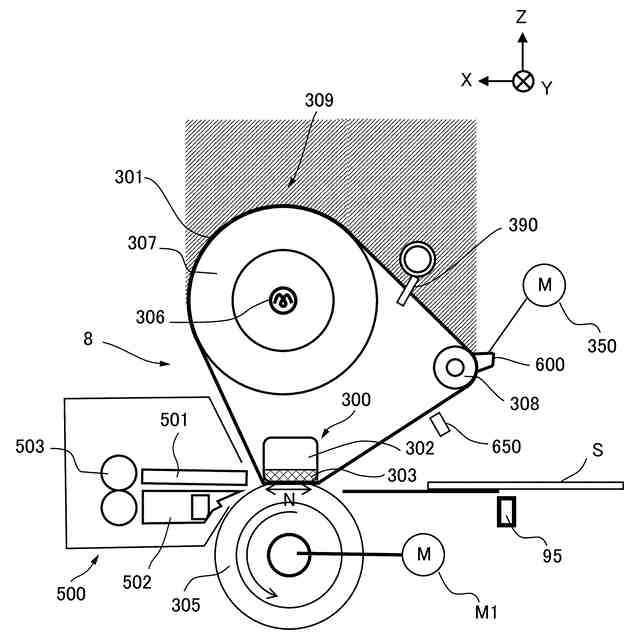 画像形成装置は、トナー像が形成された記録材に熱と圧力を加えることにより、記録材にトナー像を定着させる定着装置を備えている。定着装置の一例として、加熱したベルトを用いたベルト加熱方式の定着装置が提案されている(特許文献1)。ベルト加熱方式の場合、ベルトは一定の張力が付加されて張られた状態で加圧ローラにより加圧されている。そのため、停止状態にあるベルトは時間経過に伴い、記録材を挟持搬送して熱と圧力を加えるためのニップ部、あるいは張架ローラにより屈曲されている屈曲部などにおいて変形が生じ得る(圧縮残留ひずみなどと呼ばれる)。そうした変形がベルトに生じたまま回転させた場合には、ニップ部において記録材に対し均一に熱と圧力を加えることが難しくなるためトナー像の定着不良が生じたり、ベルトから騒音が生じたりする虞がある。