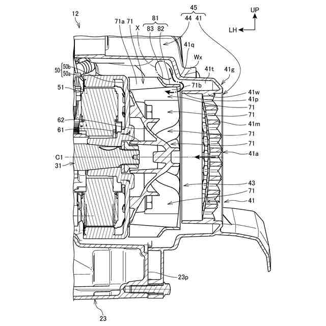 各ブレード(71)のうちの前記ブレード拡径部(71a)を除くブレード外周縁を互いに連結すると共に前記吸気口(41a)の外周枠(41g)に向けて指向する第1壁部(82)と、各ブレード(71)のうちの前記ブレード拡径部(71a)のブレード外周縁を互いに連結する第2壁部(83)を備え、前記第1壁部(82)と前記第2壁部(83)が回転軸方向に連結されている