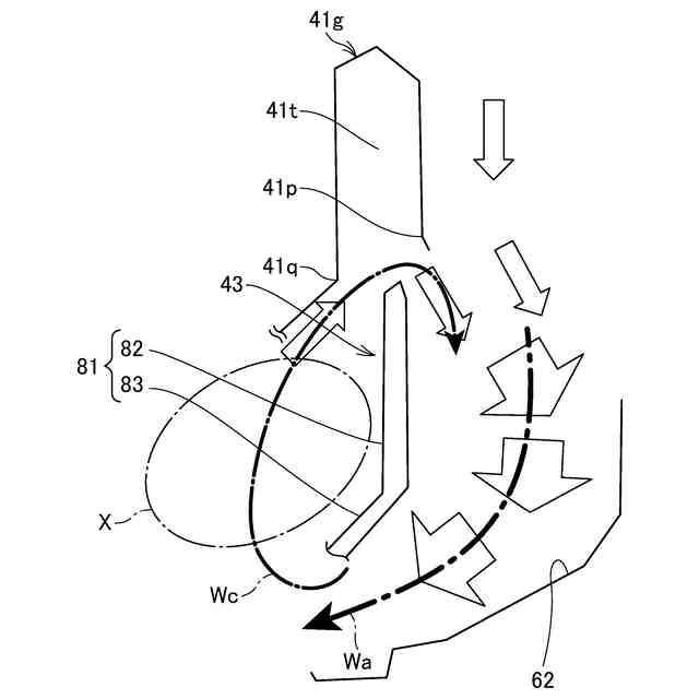 前記吸気口(41a)の外周枠(41g)は、吸気方向と逆側に凹む筒状部(41t)を有し、前記第1壁部(82)は、前記筒状部(41t)の開口に向けて指向する