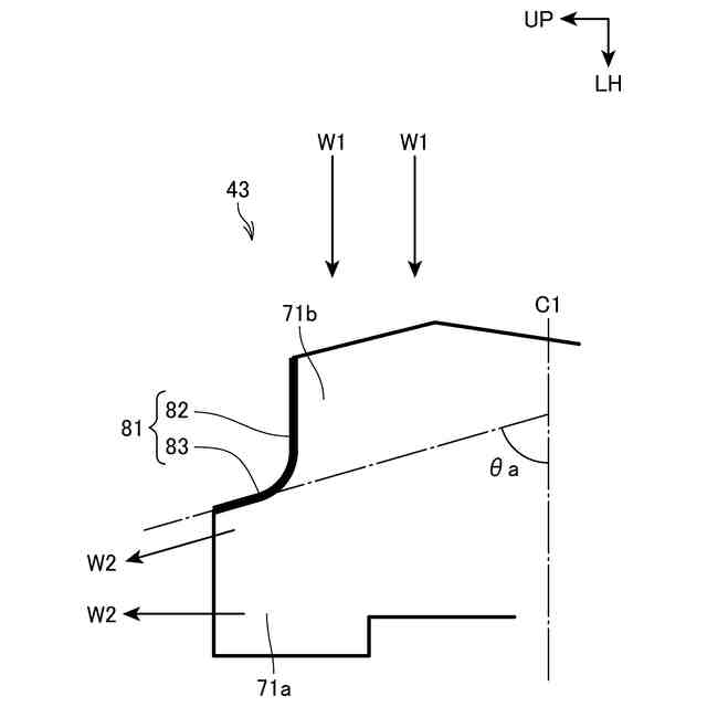 前記第1壁部(82)は、ブレード外周縁に位置する