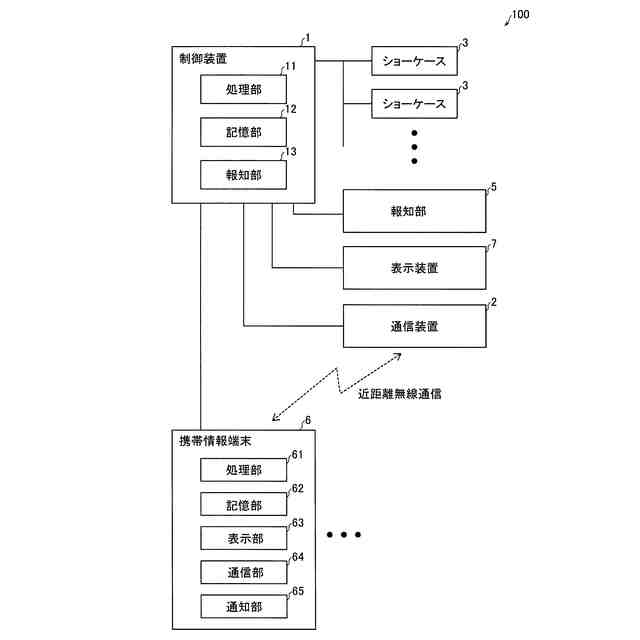 上記一の局面による店舗内位置情報取得システムにおいて、好ましくは、店舗内に設置される複数の機器を備え、制御装置は、無線通信機器と通信装置との近距離無線通信に基づいて、通信装置に対する無線通信機器の位置を算出して、複数の機器に対する無線通信機器の位置を取得する。このように構成すれば、無線通信機器と通信装置との近距離無線通信に基づいて、無線通信機器を保持する店員の店舗内の位置を精度よく取得することができるので、複数の機器に対する店員の位置を精度よく取得することができる。