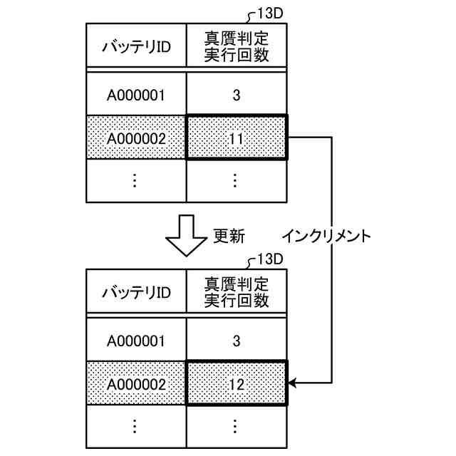 しかしながら、上記の真贋判定に用いるレファレンスを更新する頻度を高くしたとしても、必ずしも真贋判定の精度が向上するとは限らない。例えば、バッテリの電池特性測定時にはバッテリ以外の周囲環境からの外乱が測定した電池特性に重畳するため頻度高く(例えば、毎回)完全に新しく取得した電池特性にレファレンスを更新していくと外れ値がレファレンスとして設定され、真贋判定の精度が低下する場合がある。一方、レファレンスを更新する頻度が低すぎると、バッテリの時間経過による劣化の影響がレファレンスに反映されにくくなるので、真贋判定の精度が低下する場合がある。