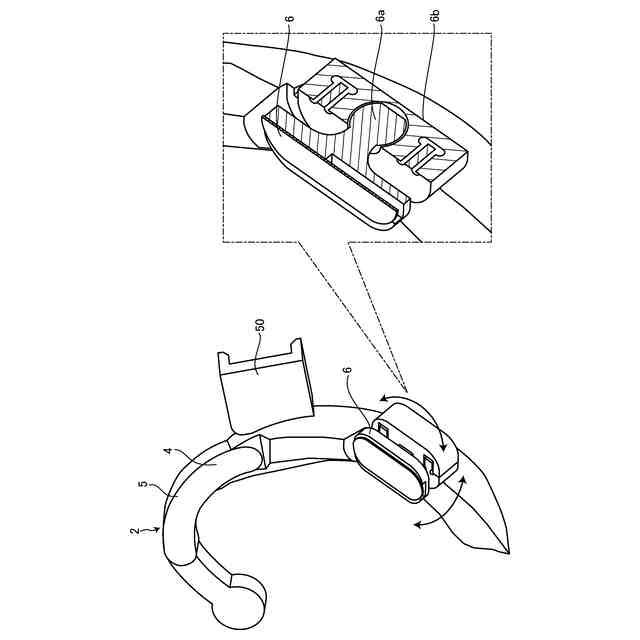 図6は、押し当て部に対する脳波測定部の回動例を示す図である。