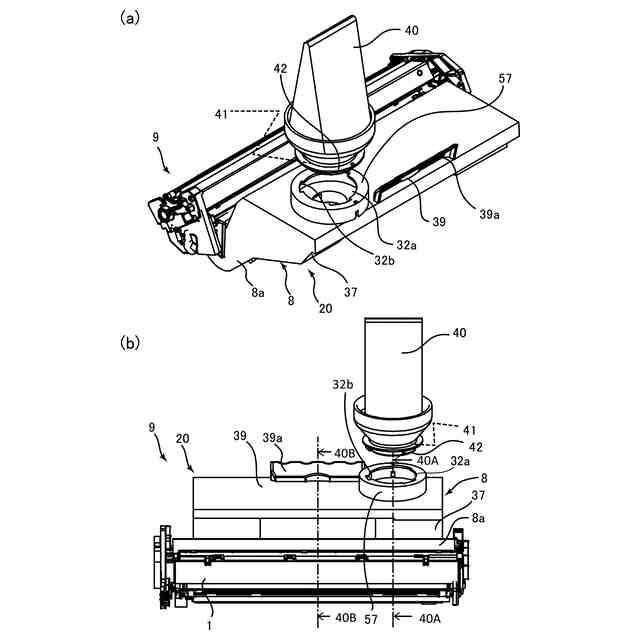 実施例1に係る現像容器及びトナーパックの説明図(a、b)。