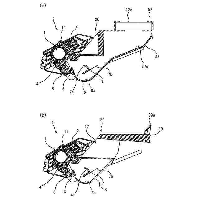 実施例1及び変形例に係るトナーパック説明図(a~c)。
