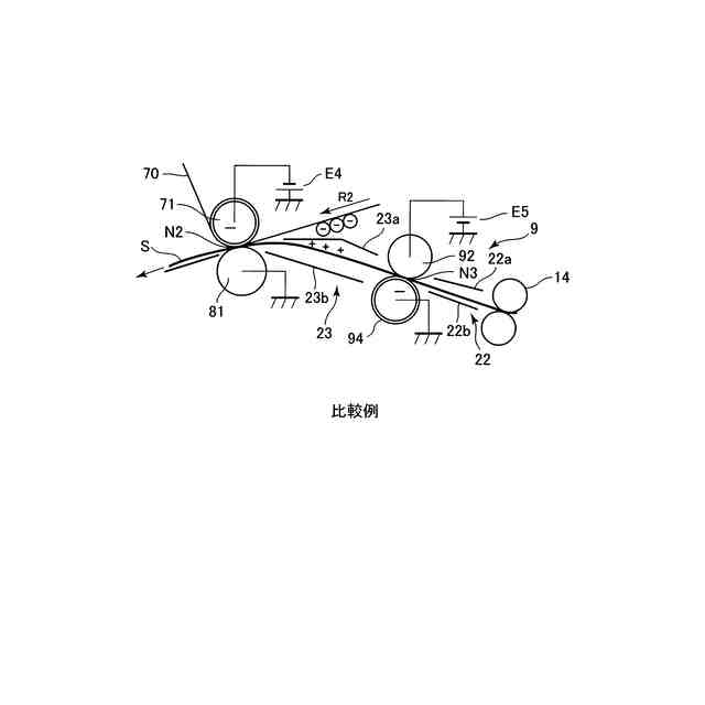 昨今、例えば中間転写方式のプロダクション機においては、画像形成に使用される記録材の種類が増える傾向にある。例えば、合成紙(プラスチックを主成分とする記録材)や超厚紙(坪量250gsmを超えるような厚紙)などの電気抵抗の高い記録材にトナー像を適正に二次転写するためには、電圧の絶対値が非常に大きな二次転写バイアスの印加が必要になる。生産性(画像形成速度)を落とさずにこのような記録材に適正にトナー像を二次転写するためには、記録材のトナー像が転写される面を予めトナーの正規の帯電極性とは逆極性に帯電させて転写電流不足を補うことが有効である。