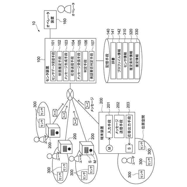 そのシステムでは、ユーザが自宅の機器に話しかけると、その内容が音声認識技術により文字列化されて、サービスを提供する業者の管理センタにメッセージ送信される。管理センタでは、当該メッセージの受信に気が付いたオペレータがセンタ装置に返事を入力して、それがユーザ側に返信される。