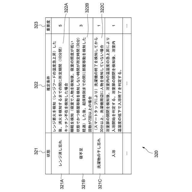 ユーザの居住空間にある1又は複数のセンサから出力されるセンサデータを受信するセンサデータ受信手段と、
