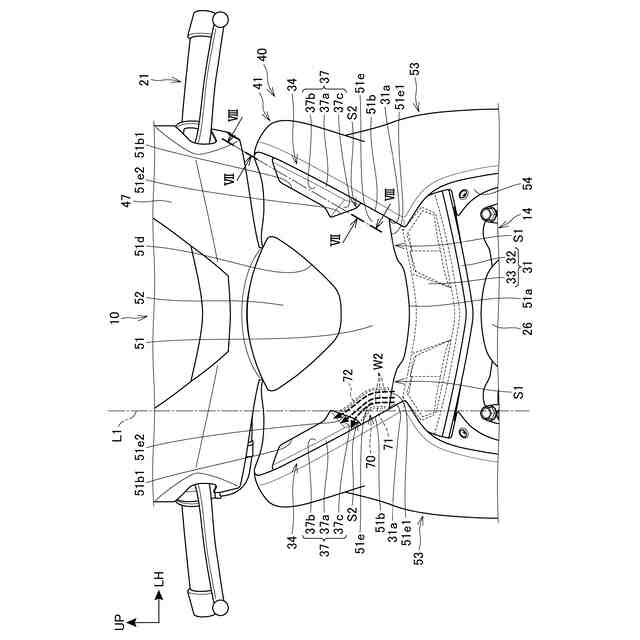 前記区画部(51e)の後端(51e2)は、前記ウィンカ(37)との間に隙間(S2)を設ける