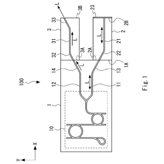 波長可変レーザは、外部共振器である波長可変フィルタチップと半導体光増幅器とを接続することで構成される。この場合、波長可変フィルタチップの導波路と半導体光増幅器の導波路とでは実効屈折率が異なるため、端面に対して垂直な導波路同士を接続すると反射が生じる。その結果、レーザ発振が不安定になる現象が生じる。そこで、反射の影響を抑制するため、特許文献1におけるように、反射の影響を最小化するように、端面に対して所定の角度だけ傾けた導波路同士を接続することが望ましい。