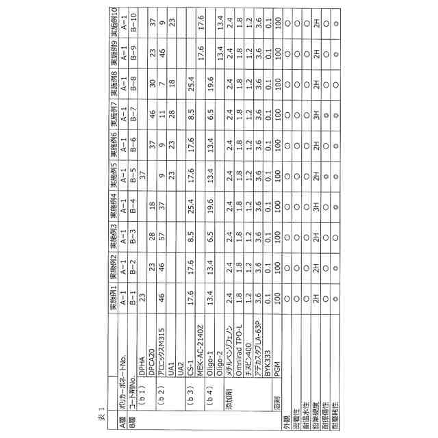 全固形分に対して、前記一般式(2)で表される(b1)が10~90質量%、前記一般