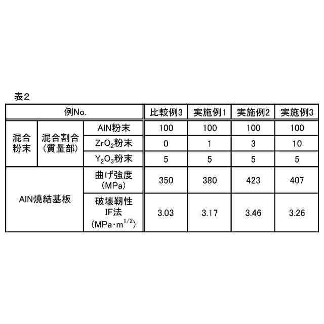 例えば、特許文献1には、機械的強度を向上させる目的で窒化アルミニウム粉末に酸化ジルコニウム粉末と酸化イットリウム粉末を添加して焼結体を作製した例が示されている(表4)。その窒化アルミニウム粉末として平均粒径2.0μmの市販品が使用されている(段落0032)。