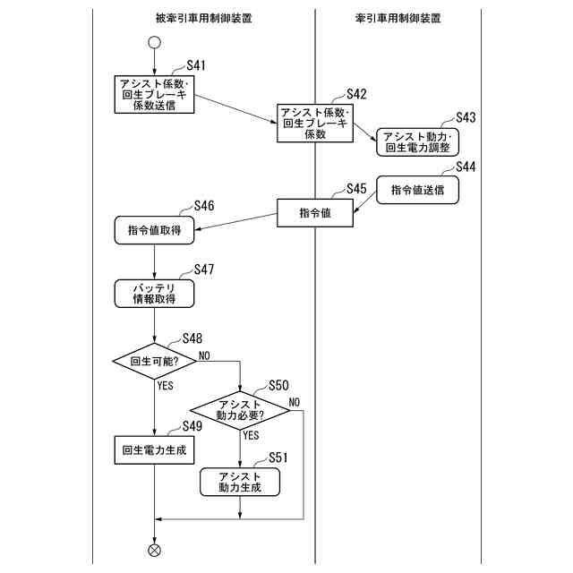 本発明によれば、出発地から目的地までの経路情報に基づいて、牽引車をアシストするアシスト動力と、バッテリへの回生電力とが調整される。つまり、例えば、得られる回生電力が少ない経路である場合には、アシスト力を減少させてバッテリに供給される回生電力を増加させることで、目的地到着時の充電率を目標充電率に一致させる。一方で、得られる回生電力が多い経路である場合には、アシスト力を増加させてバッテリに供給される回生電力を減少させることで、目的地到着時の充電率を目標充電率に一致させる。このように、本発明によれば、被牽引車に搭載されるバッテリの目的地到着時における充電率を調整できる。
