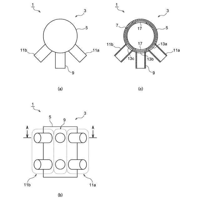 センターノズルと、該センターノズルを挟むように配置された一対のサイドノズルからなり、