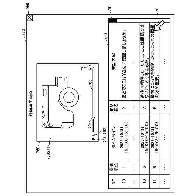 時系列の発話内容を含む録画再生画面を示す図である。