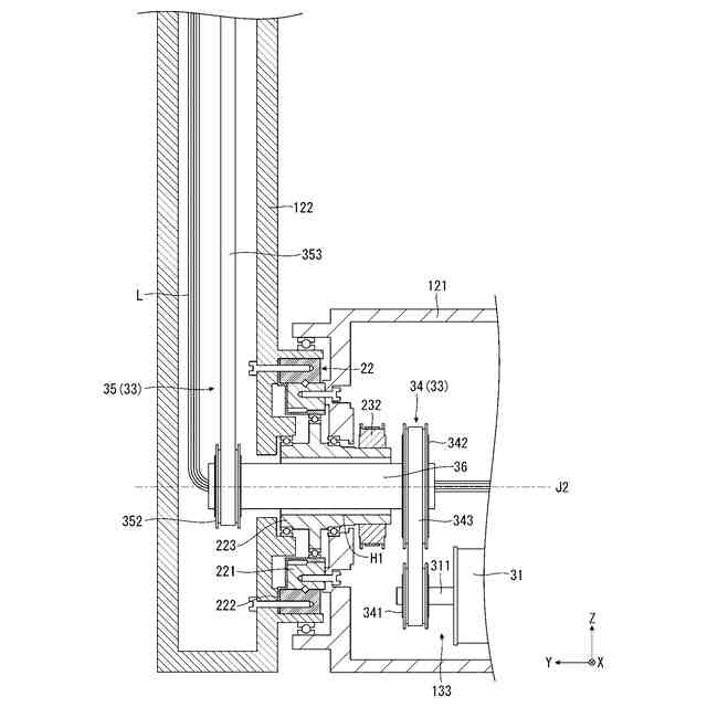 第2実施形態に係る垂直多関節ロボットを示す断面図である。