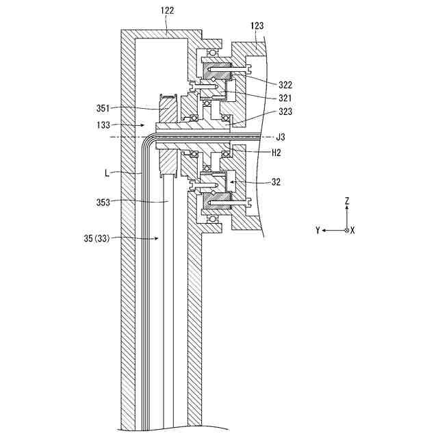 第3実施形態に係る垂直多関節ロボットを示す断面図である。